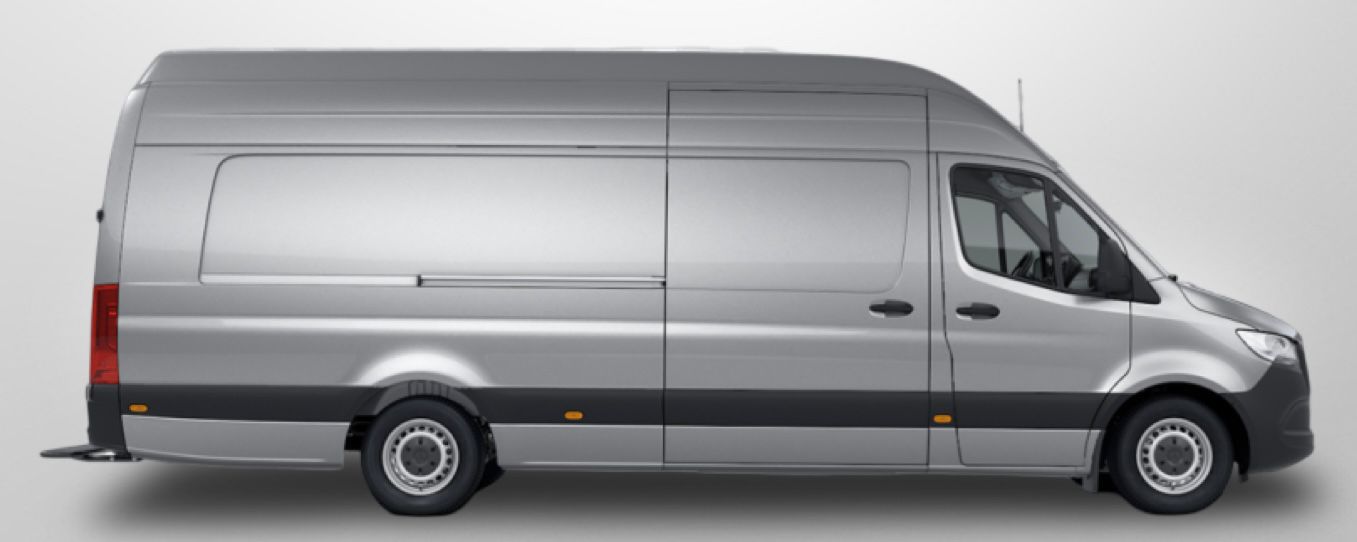 Stor varebil Mercedes Sprinter 18m3 med løftelem (Alle varebilene våre kjøres på førerkort klasse B)